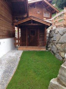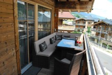 Das Chalet hat Terrasse und einen Balkon am Süd und West Seite für optimal genuss
