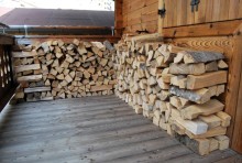 Auf dem Balkon gibt es auch einen Vorrat an Brennholz zur direkten Verwendung