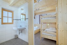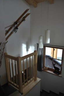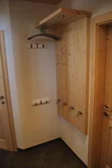 Die Garderobe hat genügend Haken und Befestigungsmöglichkeiten, so dass jeder seine Jacke oder Mantel einfach aufhängen kann. Skimützen und Helmn können Sie auf din Ablage legen oder oben auf den Schränken in den Schlafzimmern.